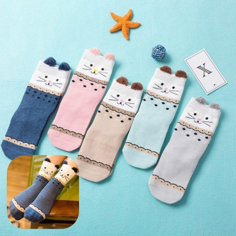 靴下 5枚セット キッズ クルーソックス 猫 Cat 耳付き イラスト カラバリ豊富 女の子 お出かけ おしゃれ キュート かわいい Sox おとりよせ Com 通販 Yahoo ショッピング